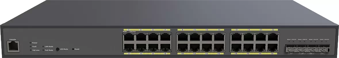 - Port configuration: 24x1Gigabit + 4x10Gigabit SFP+